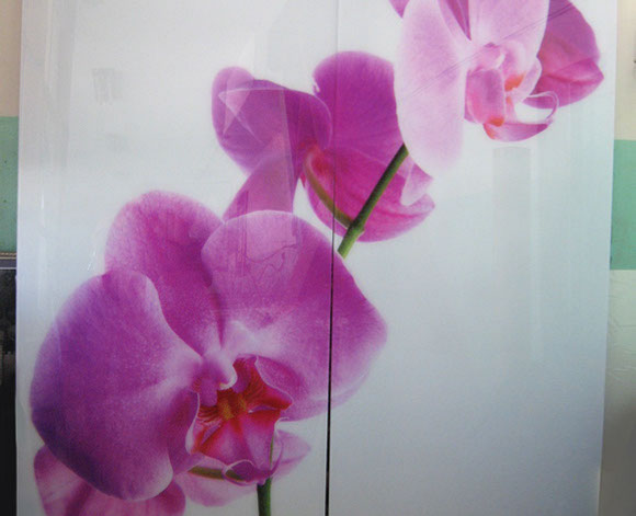 Мы осуществляем широкоформатную фотопечать на стекле и МДФ фасадах, а также фотопечать на обоях.
