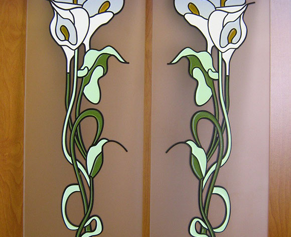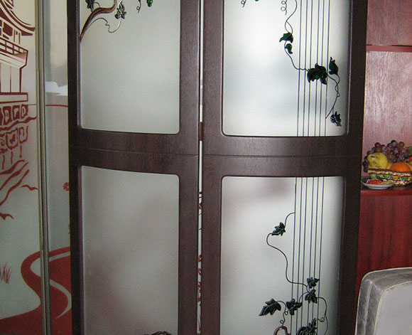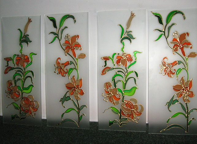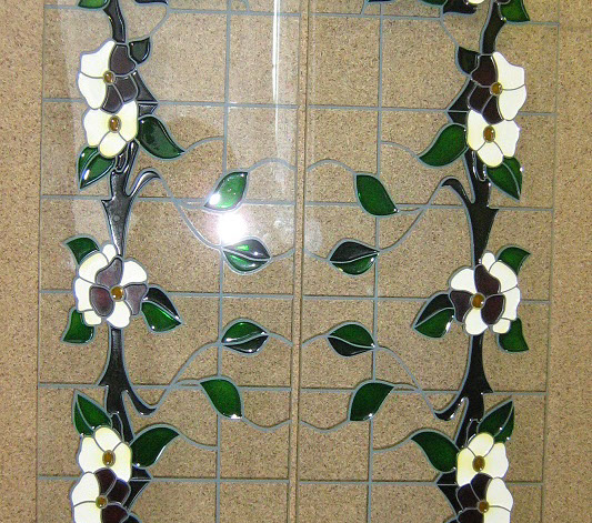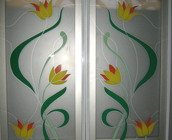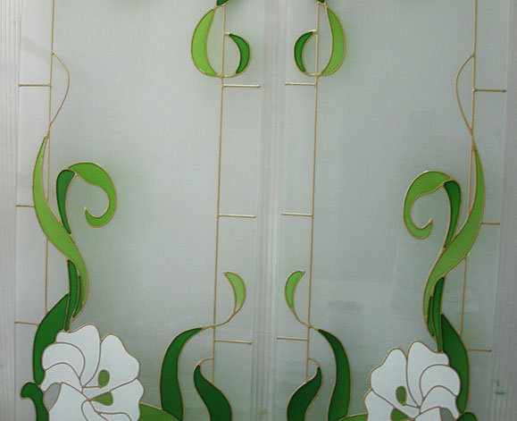 Изготовим вставки для кухонной мебели из различных видов стекла — простого, матированного, рифленого, лакобели (окрашенное стекло). В качестве художественной обработки стекла может быть пескоструйный рисунок, простой или цветной, витраж контурный или со свинцовой ленточкой, художественное оформление из фацетов.