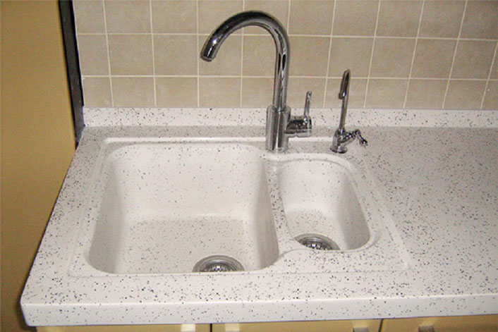 При отсутствии переходов между каменной столешницей и чашей каменной мойки все становится просто и понятно. Раковина из искусственного камня придаст Вашей кухне современный и эстетичный внешний вид. Она словно сливается со столешницей и становится невидимой. Мойка из искусственного камня имеет толщину 12 миллиметров, что делает её ударопрочной и надежной в быту. К тому же отпадает необходимость в мокром столе, который раньше был завален немытой и чистой посудой одновременно.