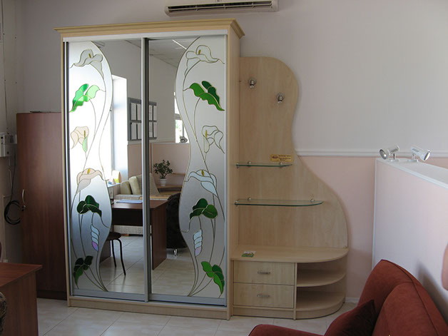 Для небольших комнат стоит подбирать компактные модели, а тем, кто желает максимально сэкономить пространство, стоит обратить внимание на угловые шкафы купе, они будут самым оптимальным вариантом. Благодаря многообразию декоративных накладок, фактурного стекла и прочих декоративных элементов выбрать шкаф можно буквально для любого интерьера. Те, кто заботится о сохранности своих вещей, все чаще отдают предпочтение шкафам купе, оснащенным системой вентиляции.