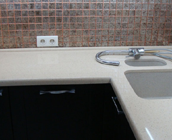 Последняя тенденция в мире «мойка для кухни» - это раковины, изготовленные из искусственного камня. Такая мойка изготавливается из того же камня, что и столешница. Затем она подклеивается с внутренней стороны каменной столешницы. Стык полируют и внешний вид столешницы и мойки приобретает цельный вид. В таком варианте раковины из искусственного камня есть много неоспоримых преимуществ. Во-первых, столешницы имойки из искусственного камня не боятся воды и загрязнений. Во-вторых, отсутствует щель между мойкой и столешницей, куда регулярно забивается грязь, крошки, остатки еды и так далее. В-третьих, очень удобно сметать остатки воды, влаги, крошки с каменной столешницы прямо в мойки из искусственного камня. Современные хозяйки, испытывая в деле такой вариант приготовления и уборки на кухне, приходят в неописуемый восторг. Ведь раньше, при использовании накладных раковин, приходилось аккуратно обметать пространство вокруг чаши, затем собирать все остатки в руку, и только затем выбрасывать их в мойку.